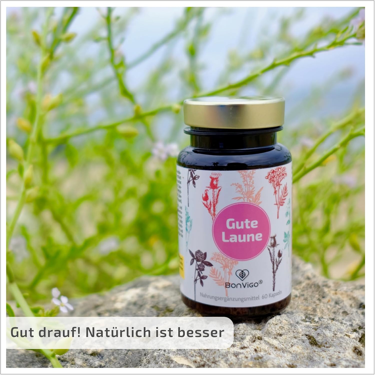 Wir empfehlen die Gute Laune Kapseln als ergänzende Produkte zu den BonVigo-Produkten Schilddrüse, UroVigo, ProstaVigo, Candida Protect, MamaVigo und BonVigo Haut Kapseln für ein breites Anwendungsspektrum.