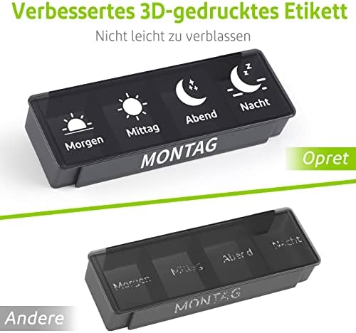 Test: Opret Tablettenbox 7 Tage Morgens Mittags Abends Nachts, Pillendose Medikamentenbox Pillenbox 4 Fächer Tablettendose Tabletten Wochenbox Supplement Box Organizer