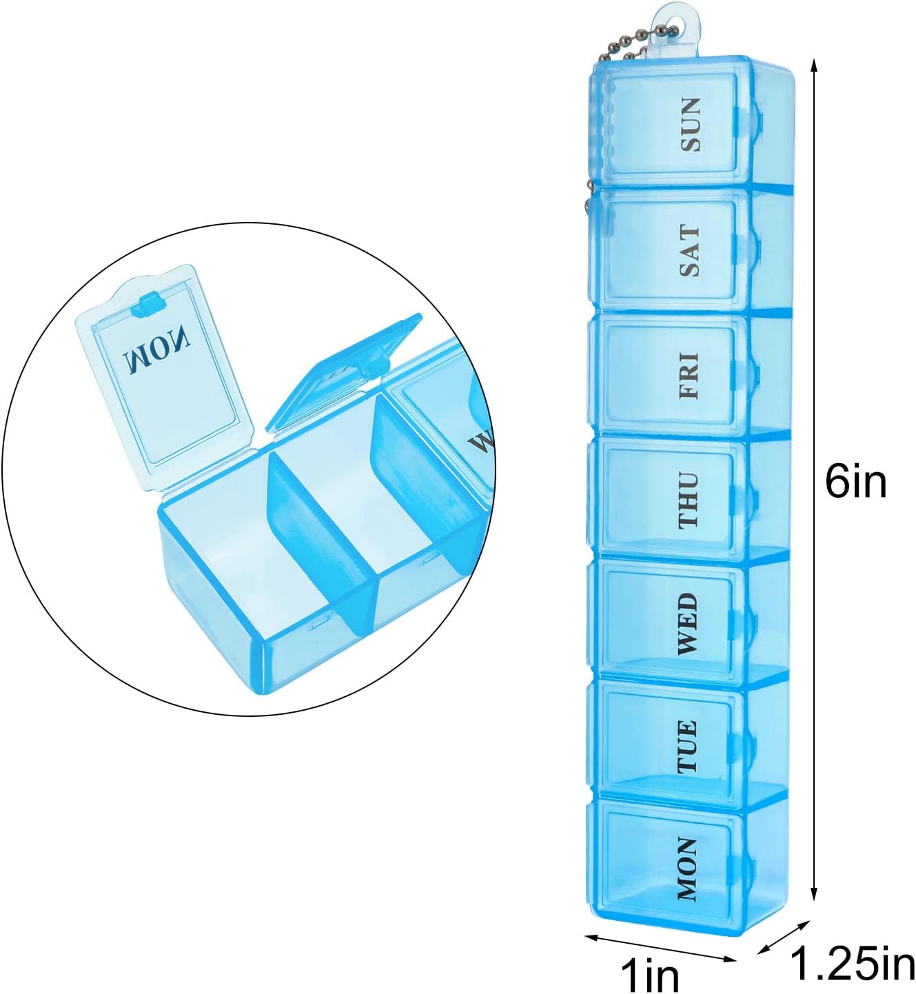 - Medikamentenaufbewahrung mit transparentem Deckel: Jede Pillendose ist klar mit dem entsprechenden Wochentag gekennzeichnet, so dass Sie die Pillen leicht unterscheiden können.
